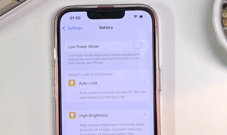- Tap the “Battery” icon to enable the “Low Power” mode.